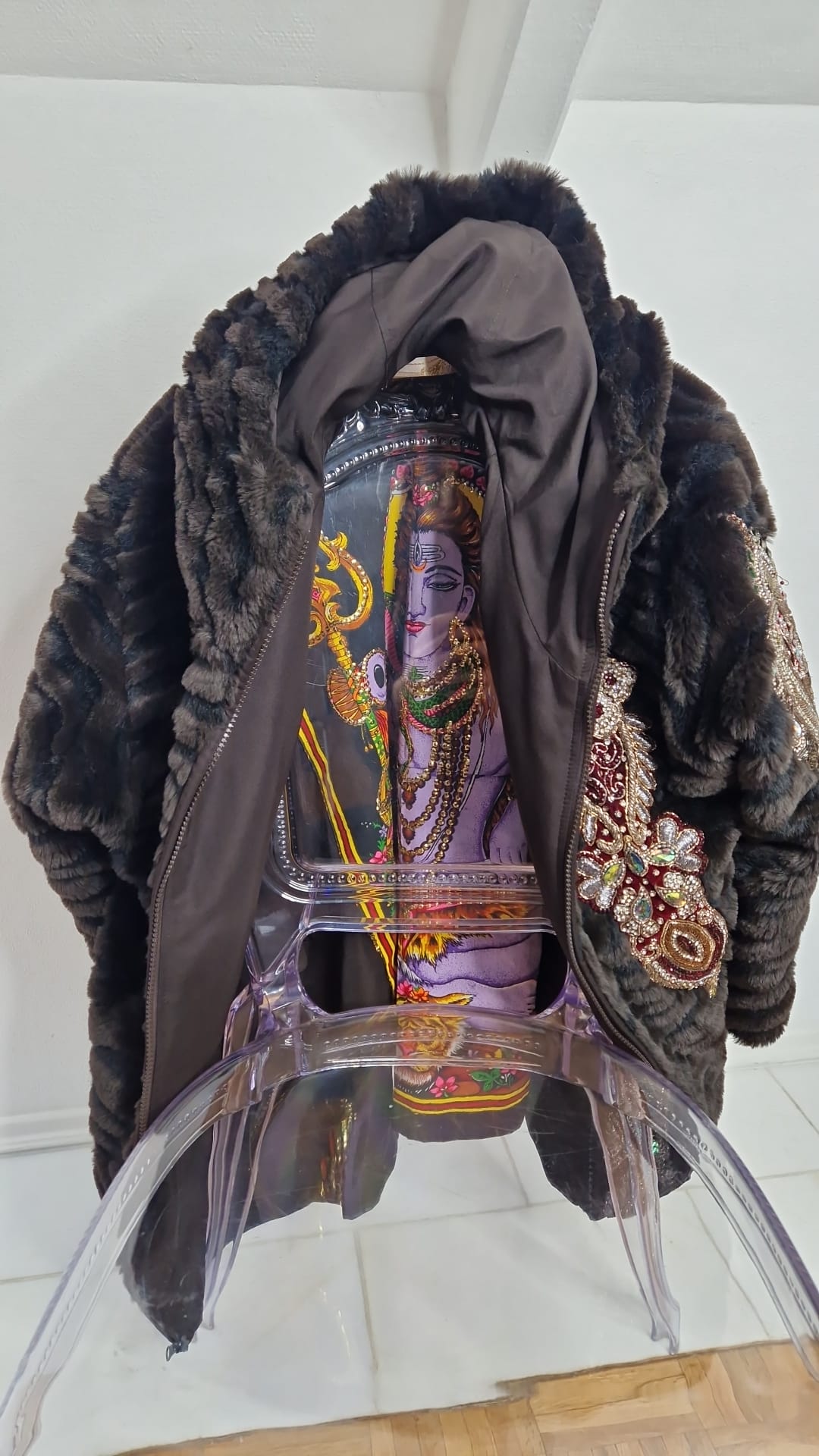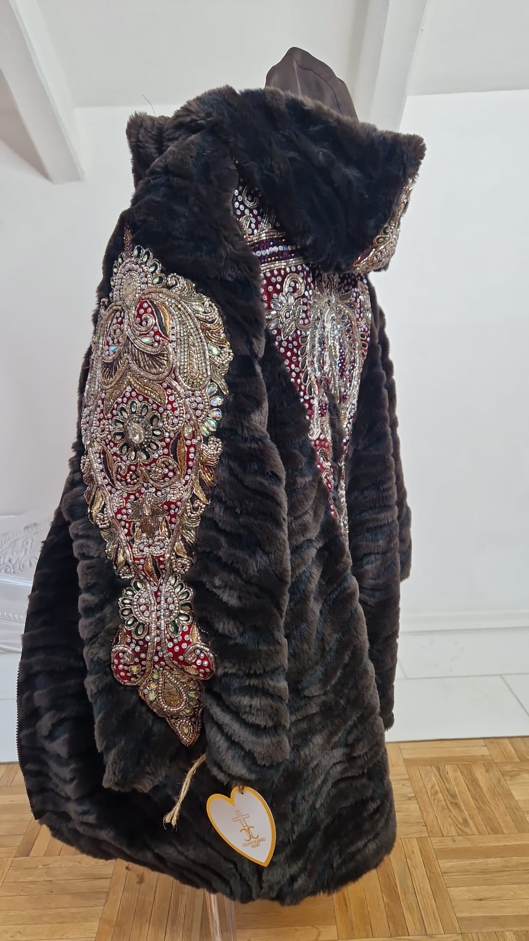 Faux Fur Vintage Mantel mit Applikationen in Größe M