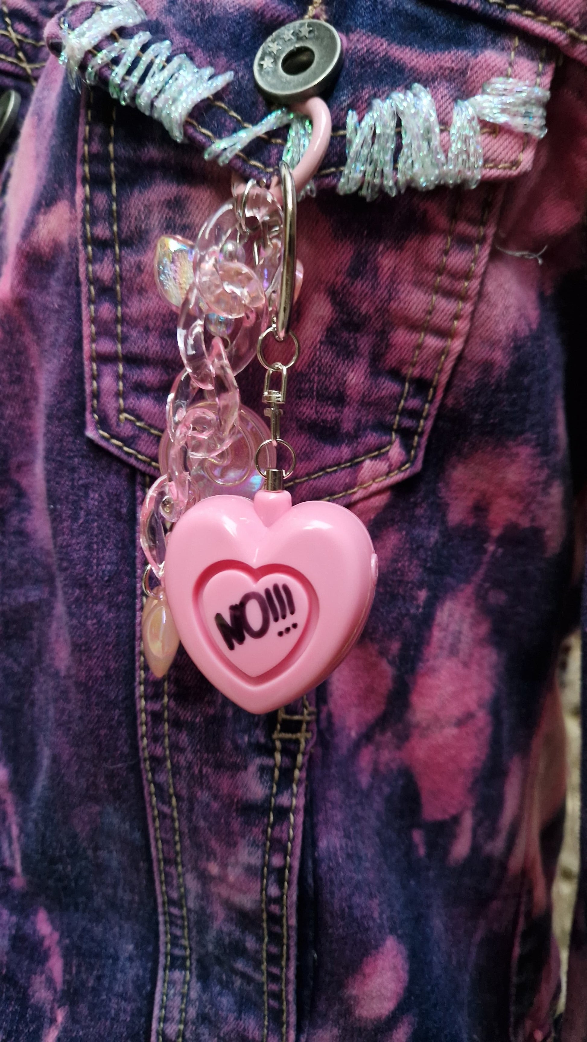 – Rosa Herz-Panikknopf „NO!!!“ Anhänger